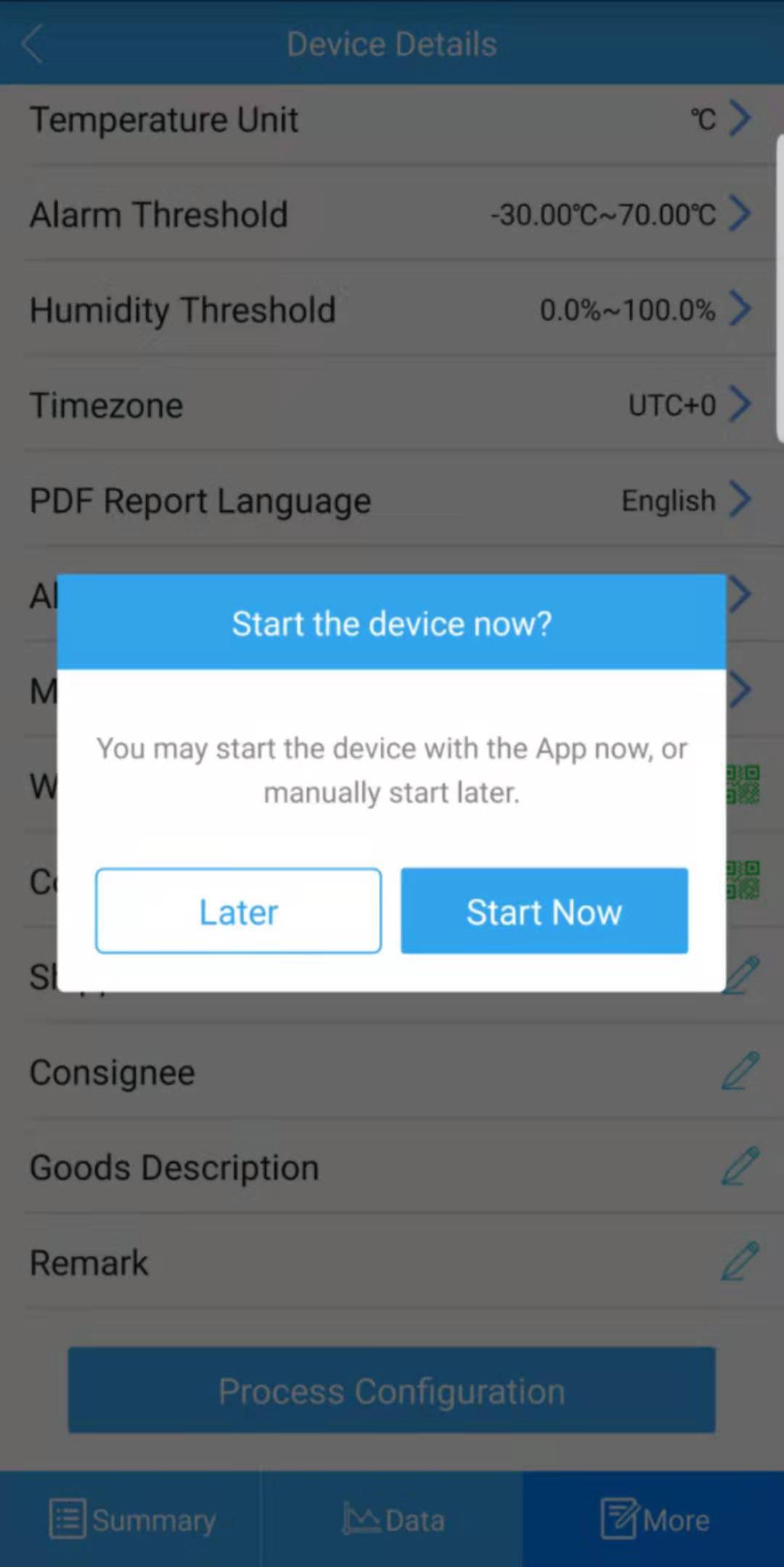 Click the "More" tab in the device details, you will find all the parameters for configuration.